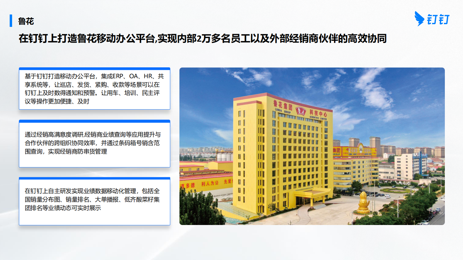 鲁花-在钉钉上打造鲁花移动办公平台,实现内部2万多名员工以及外部经销商伙伴的高效协同