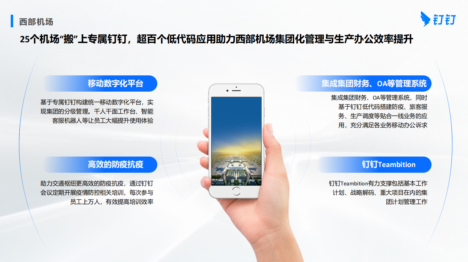 西部机场-25个机场“搬”上专属钉钉,超百个低代码应用助力西部机场集团化管理与生产办公效率提升